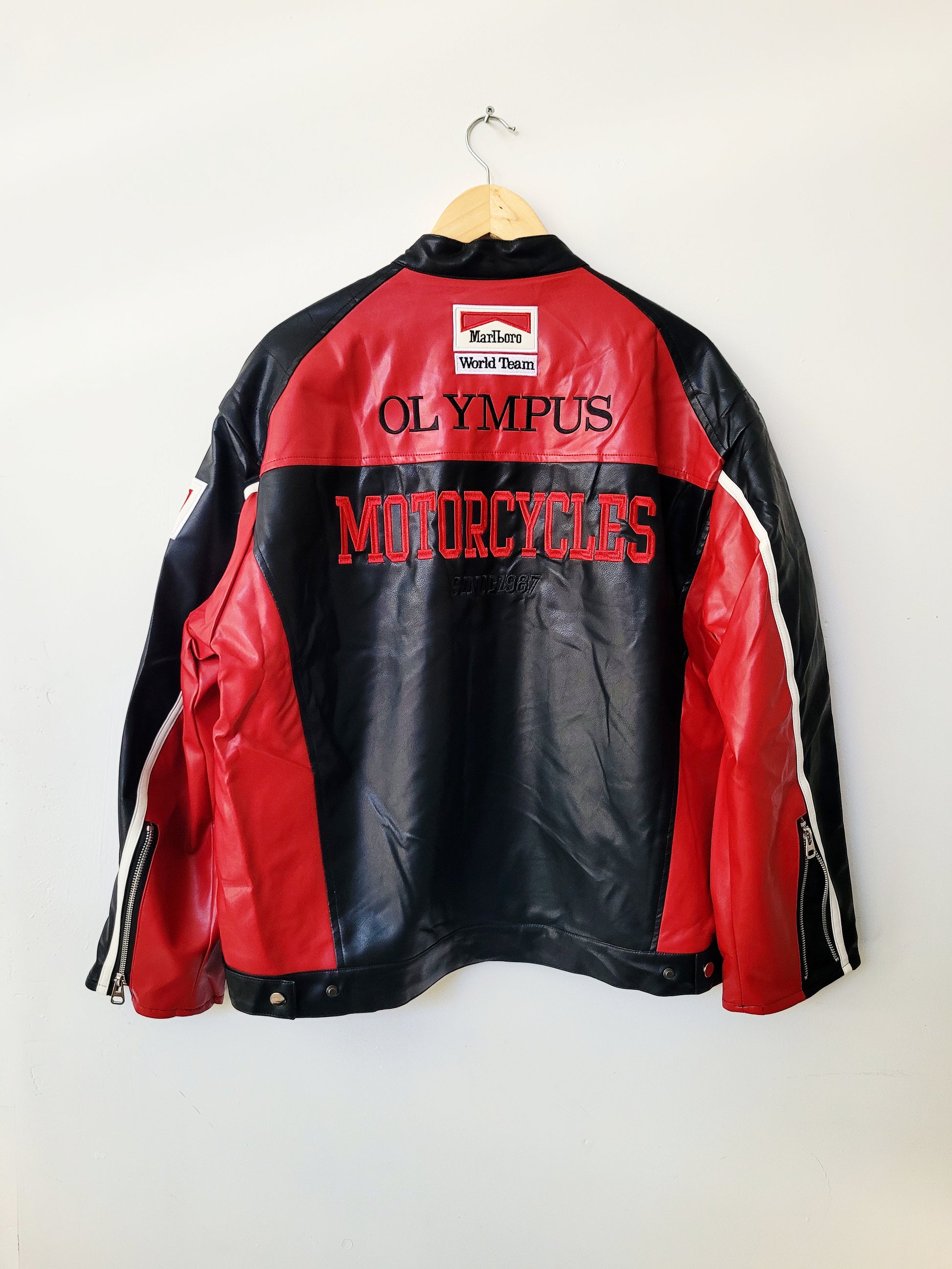 Chaqueta Ferrari F1 viral de eco cuero, material grueso y forrado con polar por dentro. de alta costura.
