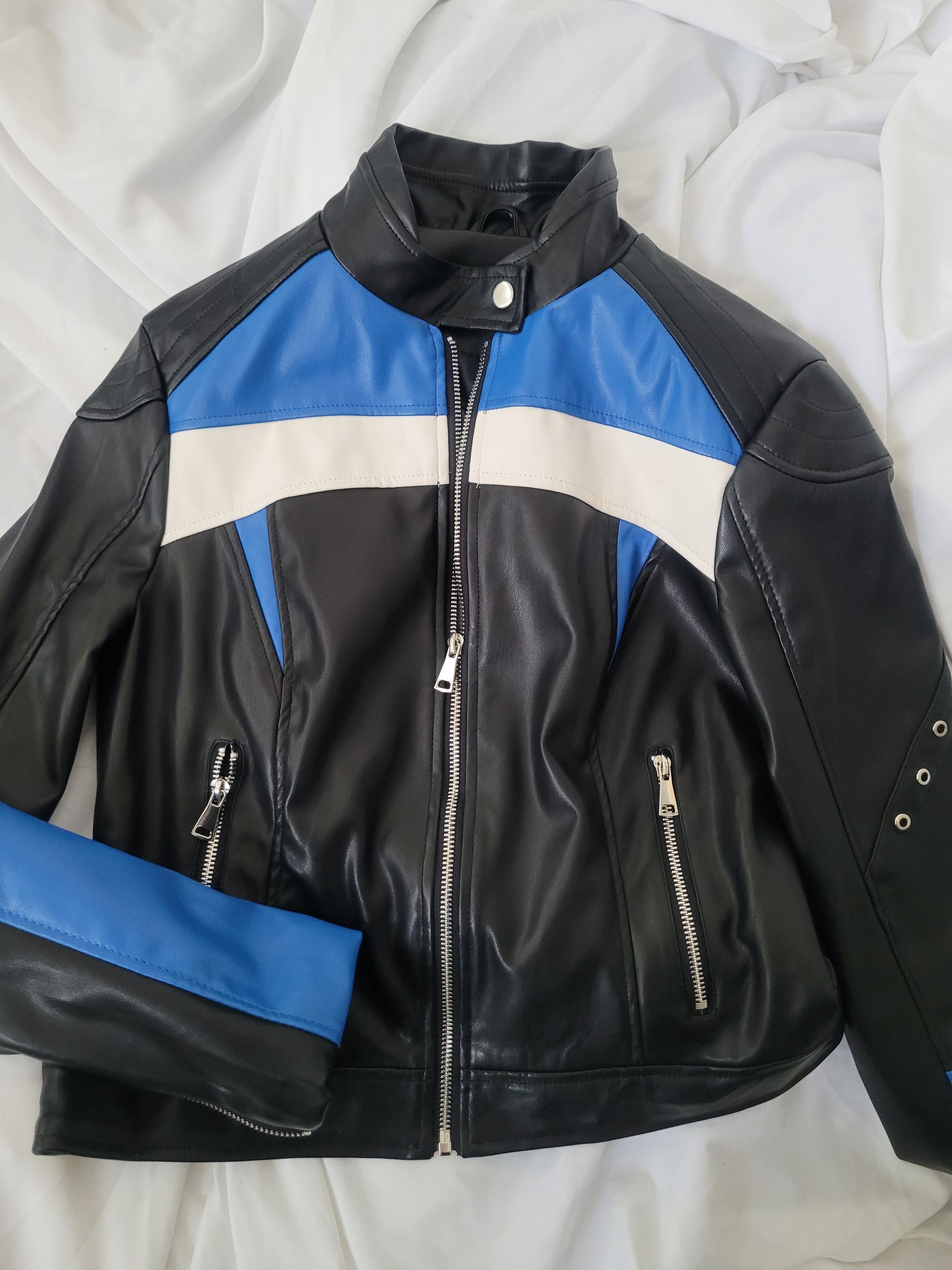 Moto jacket azul eco-cuero